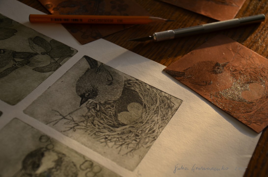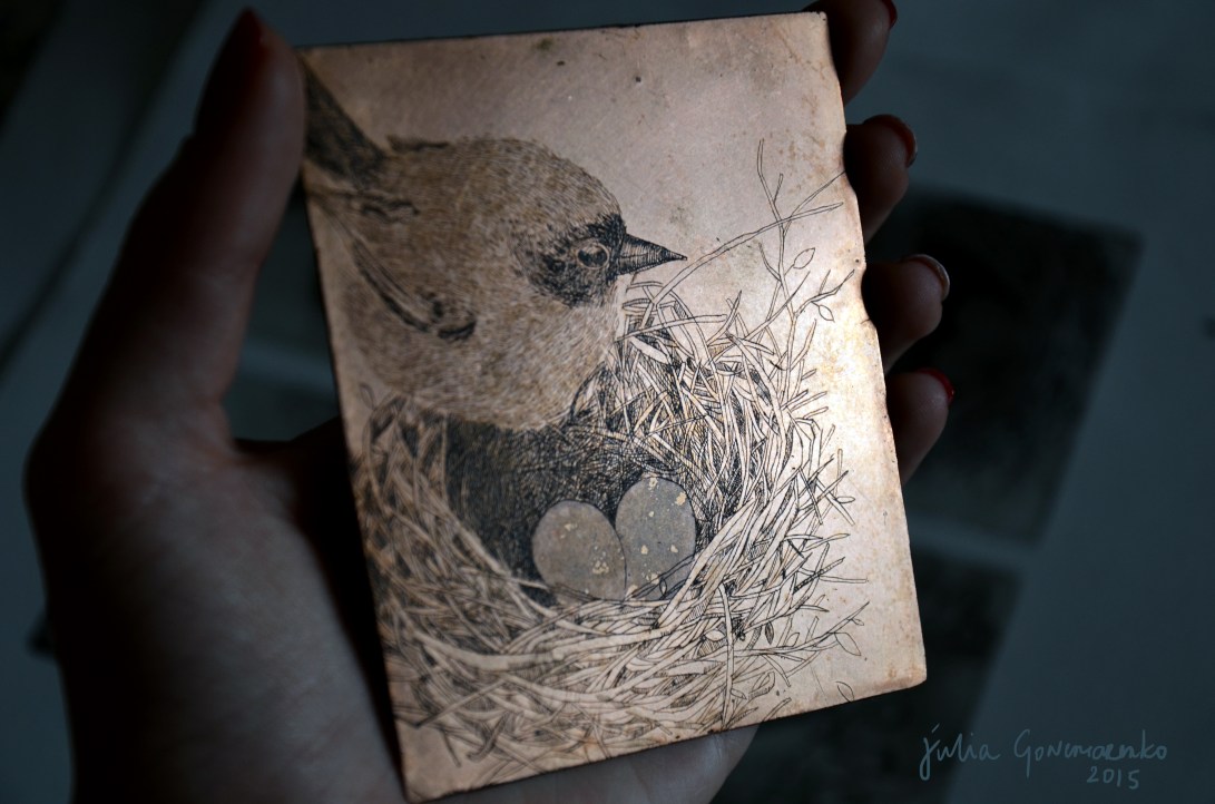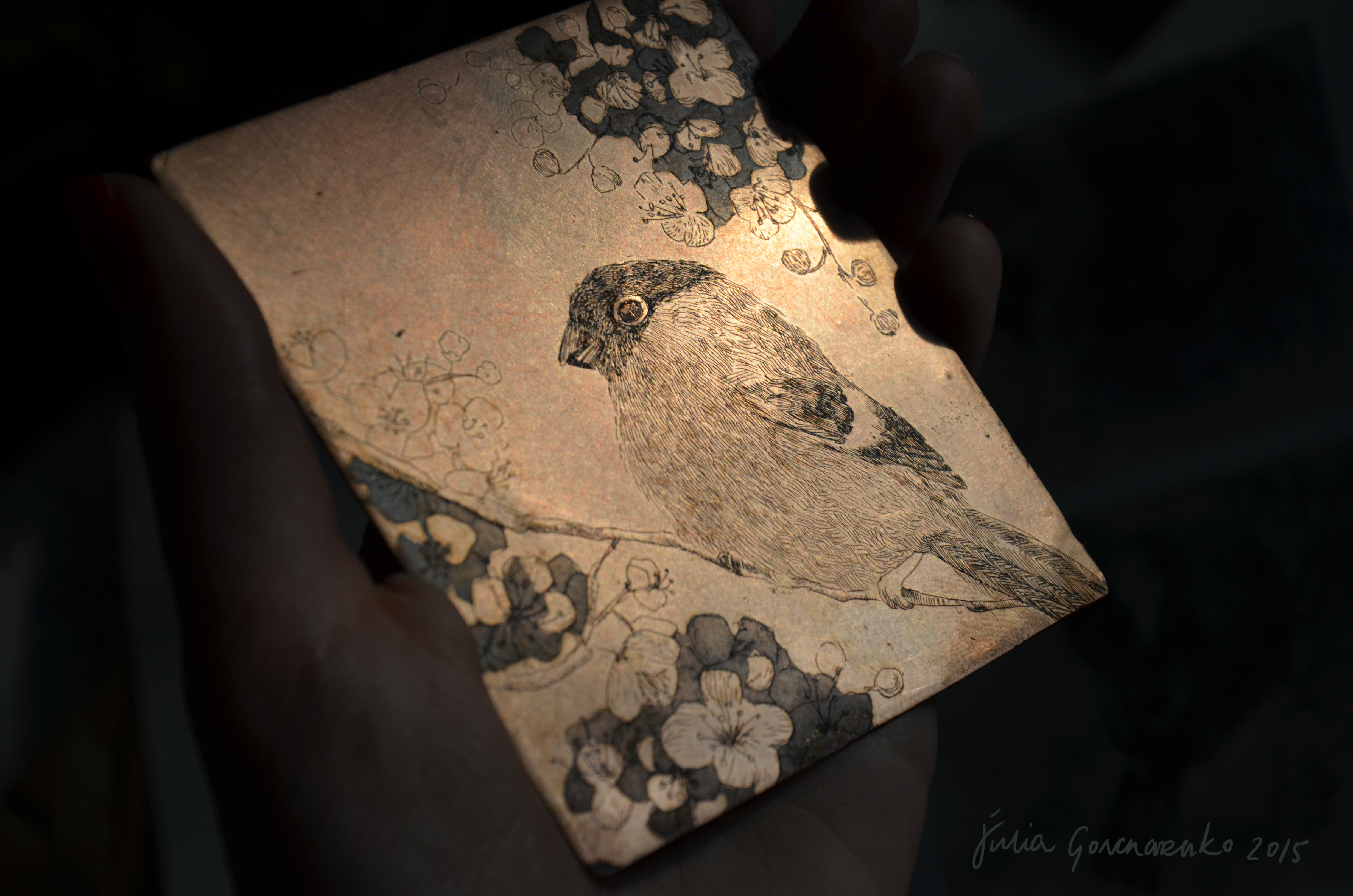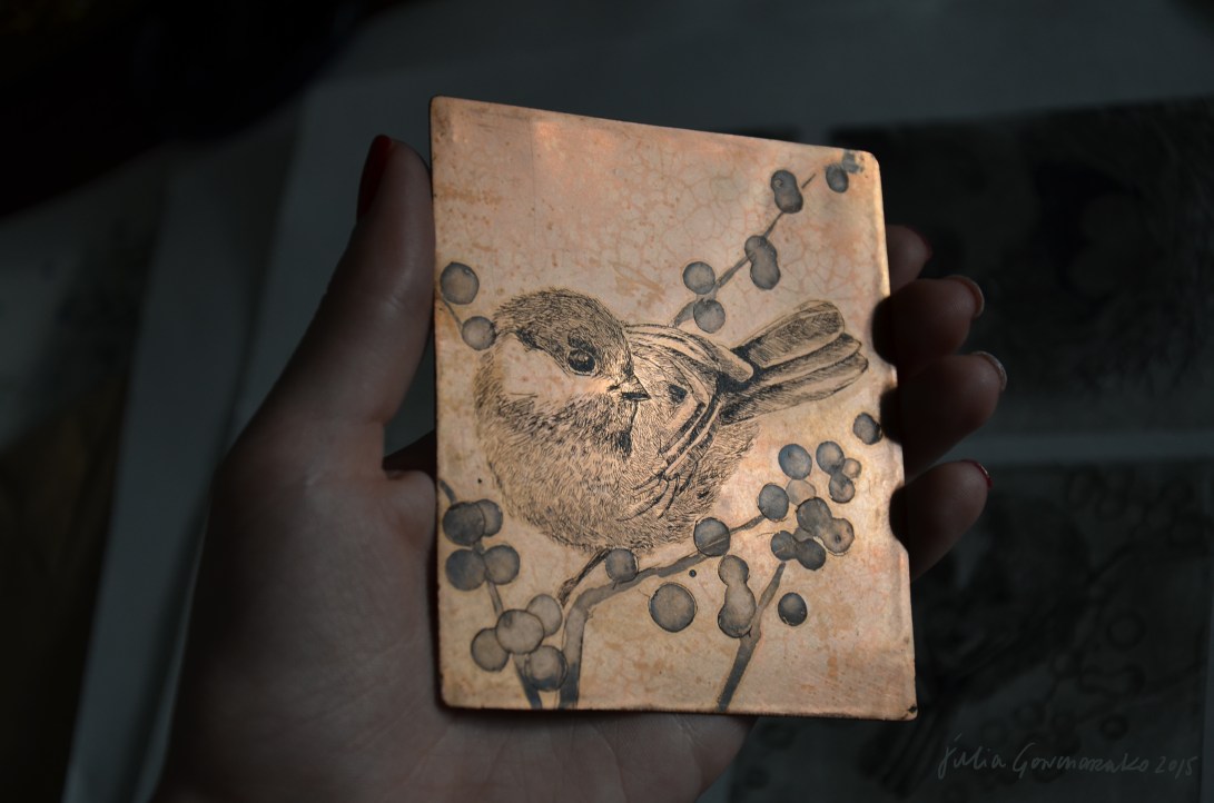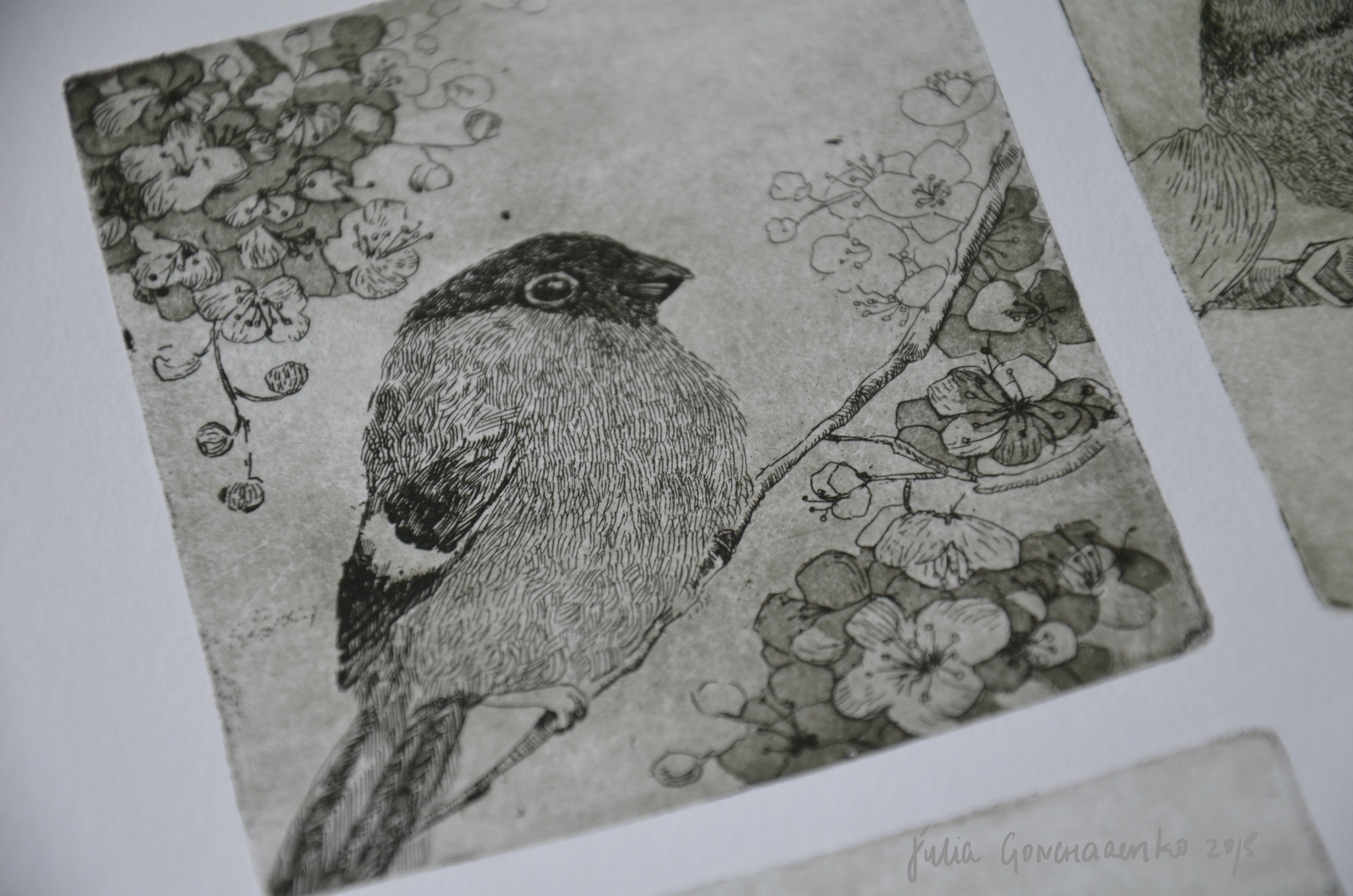 This etching was made on spring, when the nature just begin to born. I walked in the garden and after I’ve already known what will be about my new etching.